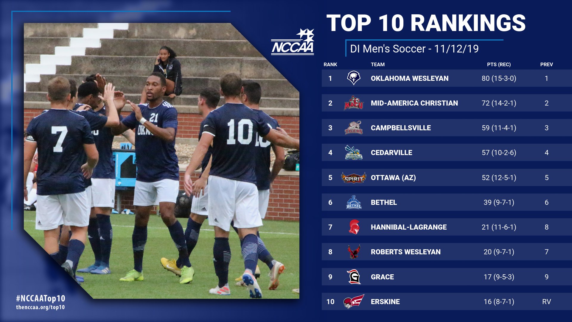 Top 10 Rankings November 12 2019 National Christian College Athletic Association
